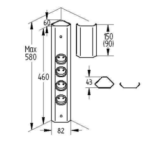 Thebo Energiezuil ST3081 Energiezuil In De Kleur RVS Met 4 Stopcontacten Met Randaarde