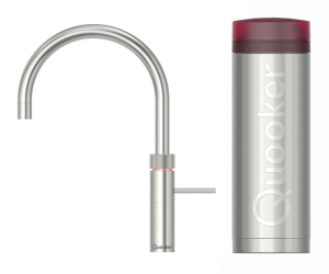 Quooker Fusion Round RVS Met Combi+ Boiler En Cube Boiler 5 in 1 Kokend Water Keukenkraan Ook Gekoeld Gefilterd En Bruisend Water 22+FRRVS
