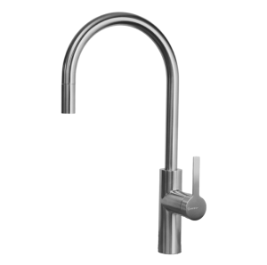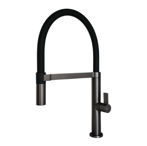 Een Caressi keukenkraan van gun metal