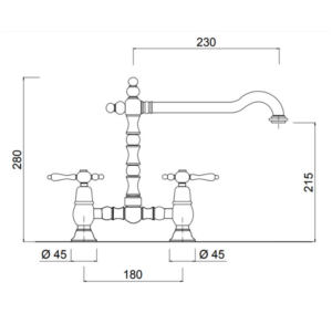 Cucina Italiano Praga Tweehendel Keukenmengkraan Nostalgisch RVS Look