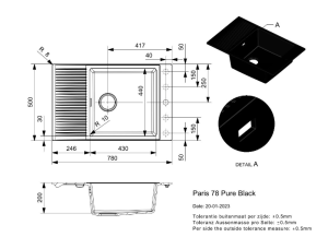 Reginox Paris 78 Pure Black R36853 Luxe Enkele Keukenspoelbak Graniet 78 x 50 Omkeerbaar Opbouw