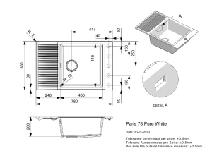 Reginox Paris 78 Pure White R36822 Luxe Enkele Keukenspoelbak Graniet 78 x 50 Omkeerbaar Opbouw