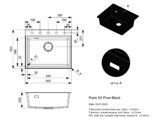 Reginox Paris 54 Pure Black R36808 Luxe Enkele Keukenspoelbak Graniet 60 x 50 Omkeerbaar Opbouw