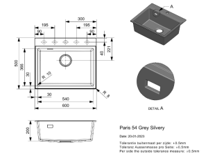 Reginox Paris 54 Grey Silvery R36792 Luxe Enkele Keukenspoelbak Graniet 60 x 50 Omkeerbaar Opbouw