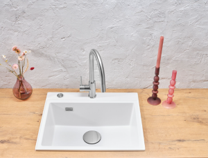 Reginox Paris 54 Pure White R36778 Luxe Enkele Keukenspoelbak Graniet 60 x 50 Omkeerbaar Opbouw