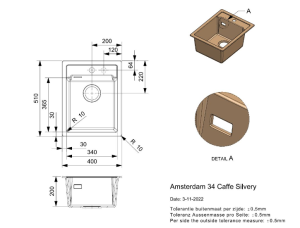 Reginox Amsterdam 25 Caffe Silvery R31100 Anderhalve Keukenspoelbak Graniet Opbouw