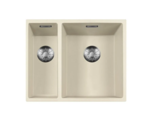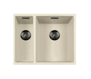 Lorreine 1534CQSP-FU-RVS Luxe Anderhalve Keukenspoelbak Graniet Coffee Cream Met Korfplug RVS 15 x 40 + 34 x 40 Vlakbouw Of Onderbouw