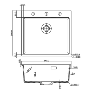 Caressi Black Line CAGR60BK-TB Enkele Keukenspoelbak Graniet Zwart Met Zwarte Korfplug Opbouw
