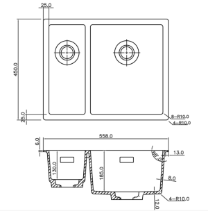 Caressi Black Line CAGR80BK-TB Dubbele Keukenspoelbak Graniet Met Zwarte Korfplug Opbouw