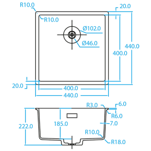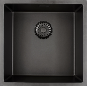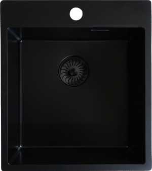 Caressi Black Line CAGRPP40BK-TU Enkele Keukenspoelbak 40 x 40 Graniet Zwart Met Zwarte Korfplug Onderbouw Of Opbouw