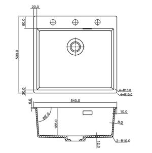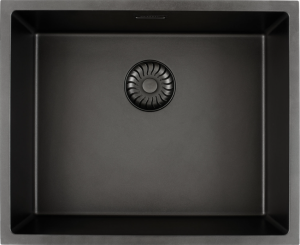 Caressi Black Line CAGRPP50BK-TU Enkele Keukenspoelbak 50 x 40 Graniet Zwart Met Zwarte Korfplug Onderbouw Of Opbouw