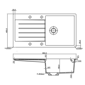 Caressi Black Line CAGRPP50BK-HPL Enkele Keukenspoelbak 50 x 40 Graniet Zwart Met Zwarte Korfplug Onderbouw Of Opbouw