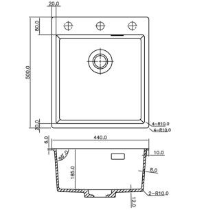Caressi Black Line CAGRPP40BK-FL Enkele Keukenspoelbak 40 x 40 Graniet Zwart Met Zwarte Korfplug Vlakbouw