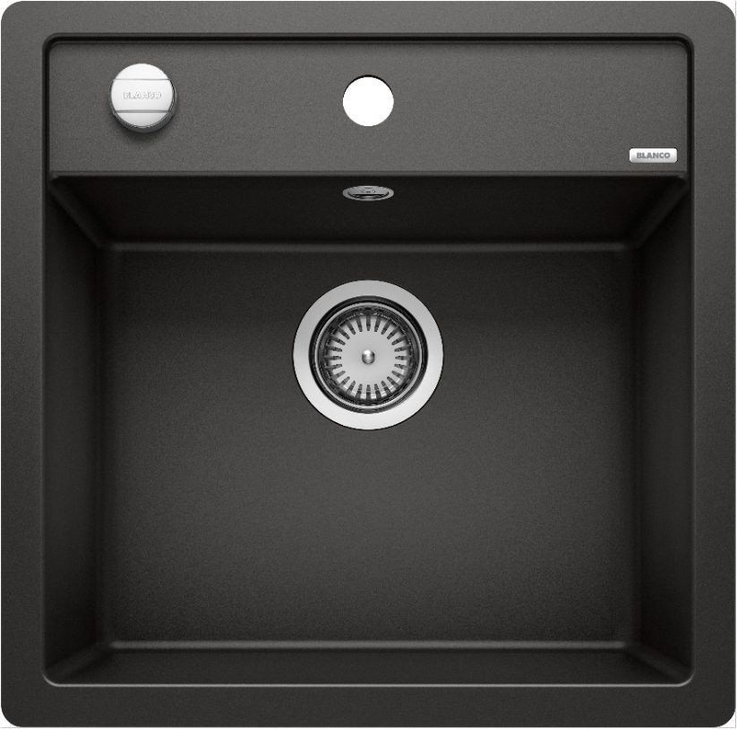 Blanco Dalago 5-F 525872 Enkele Keukenspoelbak Silgranit Zwart Inclusief Draaiknopbediening Vlakbouw