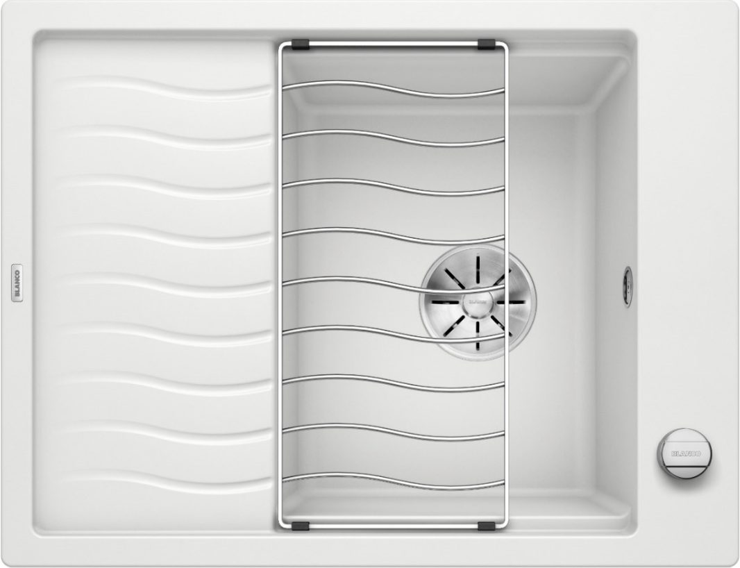 Blanco Elon 45 S 524818 Enkele Keukenspoelbak Silgranit Wit Inclusief Draaiknopbediening Inclusief Rooster Omkeerbaar Opbouw