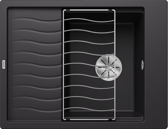 Blanco Elon 45 S 525880 Enkele Keukenspoelbak Silgranit Zwart Inclusief Rooster Omkeerbaar Opbouw