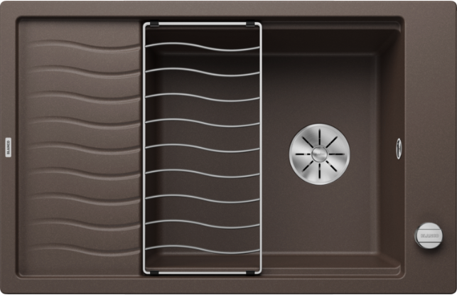 Blanco Elon XL 6 S 524843 Enkele Keukenspoelbak Silgranit Café Inclusief Draaiknopbediening Inclusief Rooster Omkeerbaar Opbouw