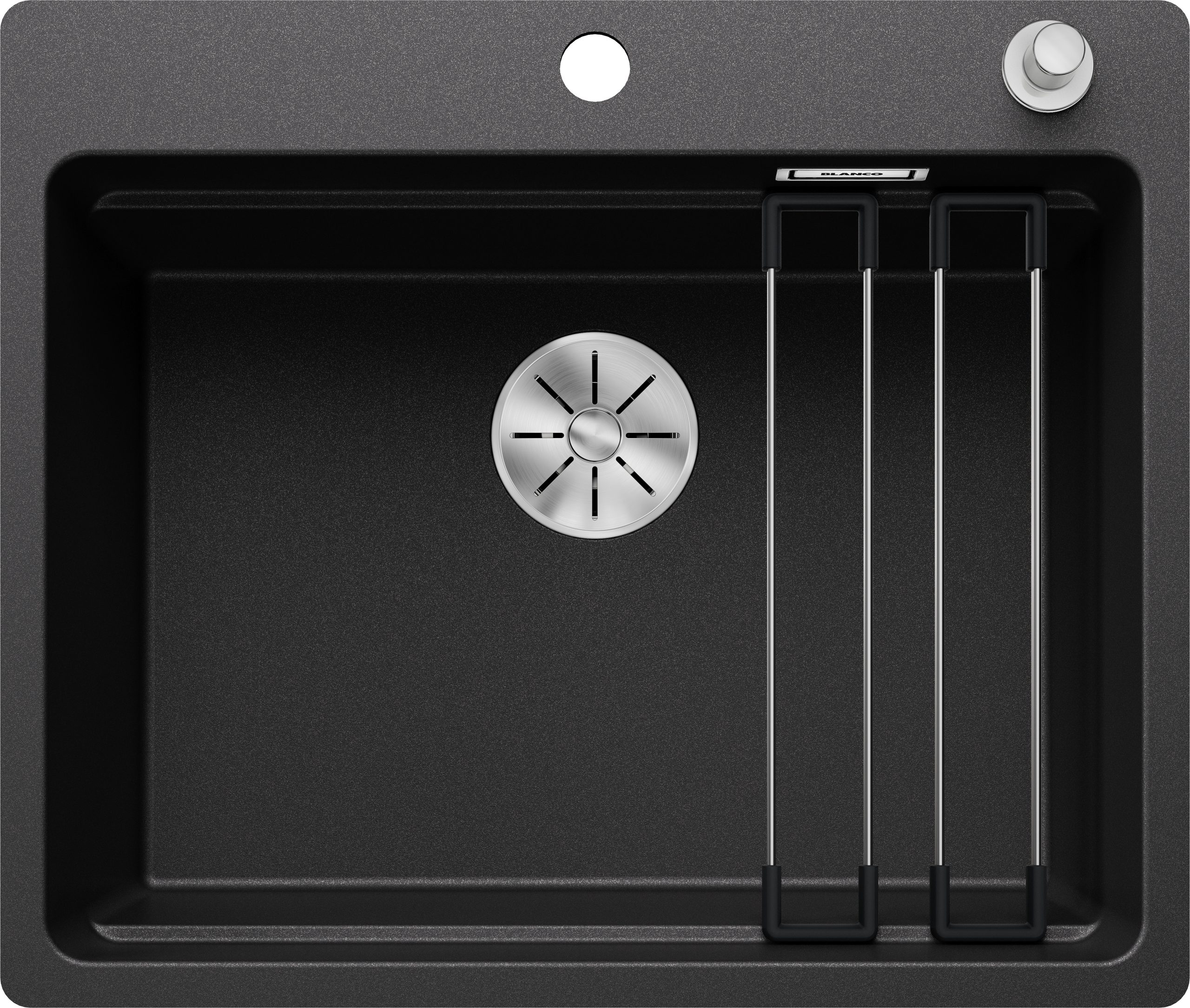 Blanco Etagon 6-F 527674 Enkele Keukenspoelbak Silgranit Zwart Inclusief Rails Inclusief Draaiknopbediening Vlakbouw