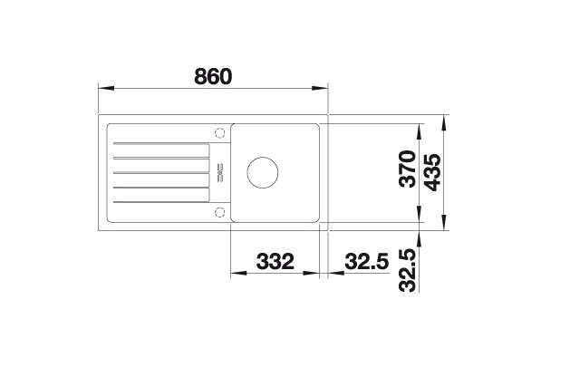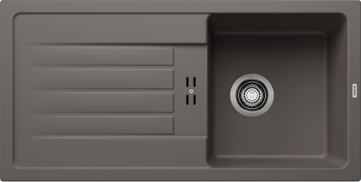 Grote spoelbak en grote afloop met harmonieus geïntegreerde overloop
