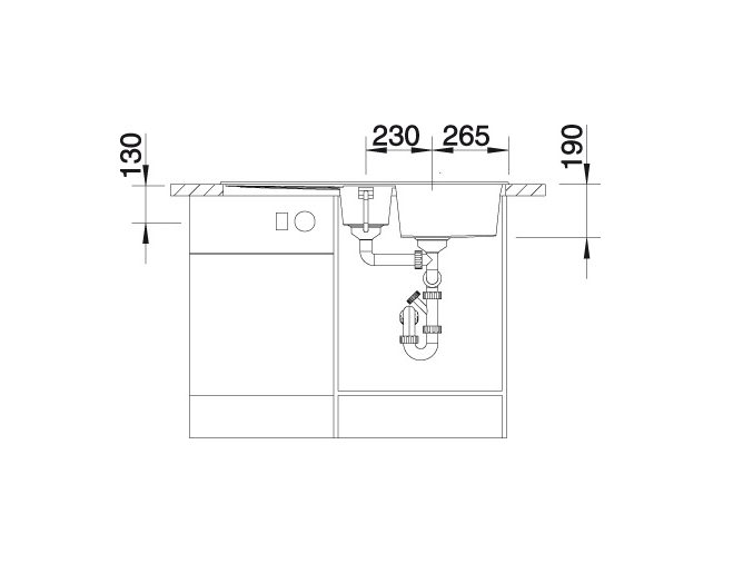 Bakdiepte: 190 mm / 130 mm