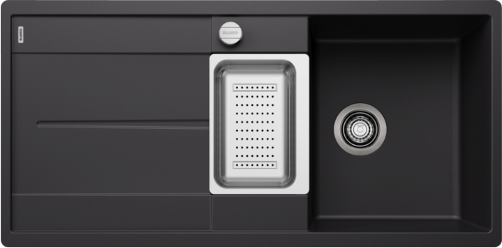 Home zwarte spoelbak Blanco Metra 6 S-F 525929 Enkele Keukenspoelbak Silgranit Zwart Inclusief Draaiknopbediening Omkeerbaar Vlakbouw Of Onderbouw