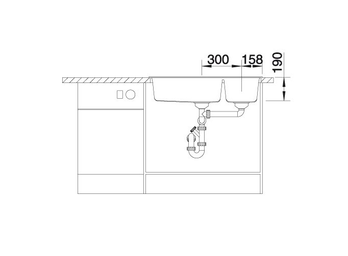 Inclusief plaatsbesparend afloopgarnituur, korfventielen 3 1/2”