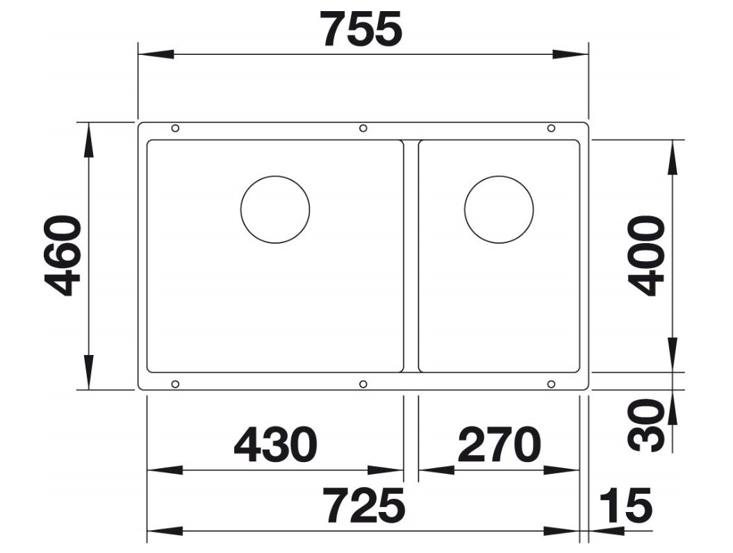 Blanco Subline 430/270-U 525991 Silgranit Zwart Dubbele Keukenspoelbak Onderbouw