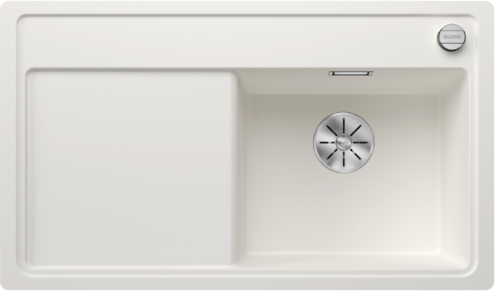 Home Witte spoelbak Blanco Zenar 45 S-F 523816 Enkele Keukenspoelbak Rechts Silgranit Wit Inclusief Draaiknopbediening Vlakbouw Of Onderbouw