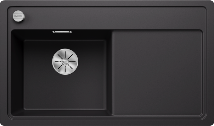 Blanco Zenar 45 S-F 526043 Enkele Keukenspoelbak Rechts Silgranit Zwart Inclusief Draaiknopbediening Vlakbouw Of Onderbouw