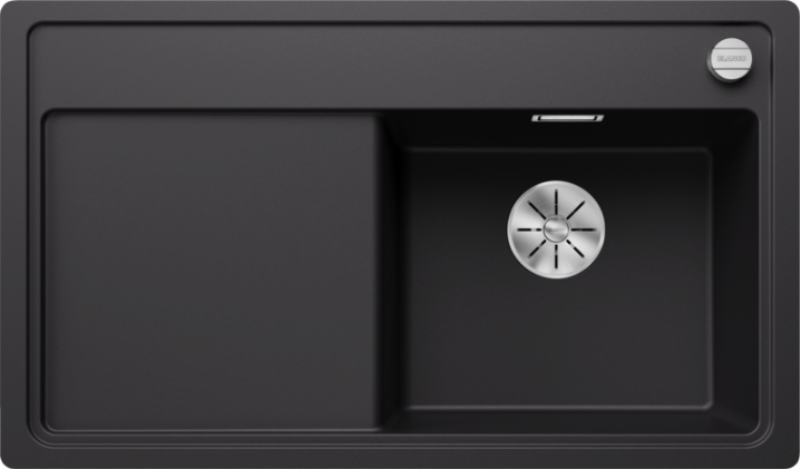 Blanco Zenar 45 S-F 526043 Enkele Keukenspoelbak Rechts Silgranit Zwart Inclusief Draaiknopbediening Vlakbouw Of Onderbouw