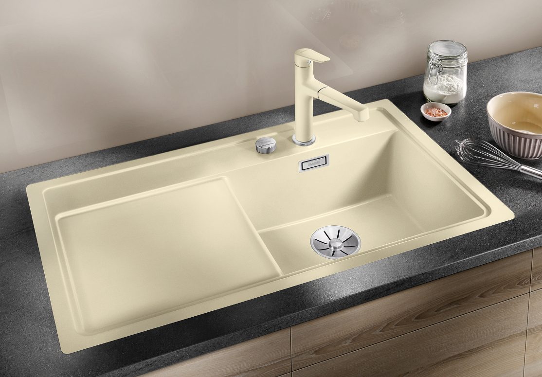 Blanco Zenar 5 S-F 527183 Enkele Keukenspoelbak Rechts Silgranit Zacht Wit Inclusief Draaiknopbediening Vlakbouw Of Onderbouw