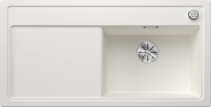 Home Witte spoelbak Blanco Zenar XL 6 S 523968 Enkele Keukenspoelbak Rechts Silgranit Wit Inclusief Draaiknopbediening Opbouw