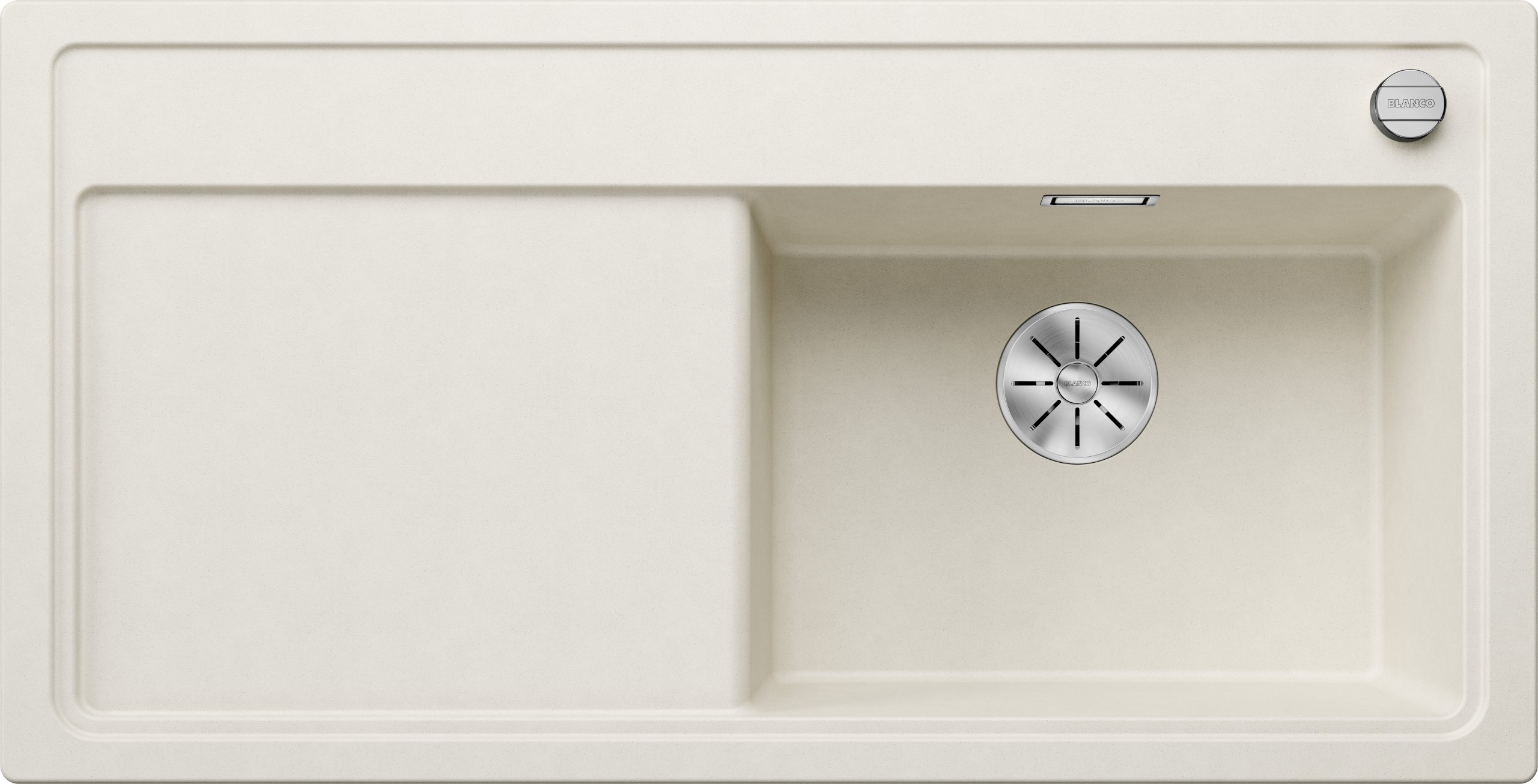 Blanco Zenar XL 6 S 527189 Enkele Keukenspoelbak Rechts Silgranit Zacht Wit Inclusief Draaiknopbediening Opbouw