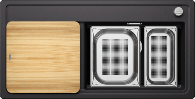Blanco Zenar XL 6 S-F Steamerplus 526056 Enkele Keukenspoelbak Rechts Silgranit Zwart Inclusief Draaiknopbediening Inclusief Houten Snijplank Vlakbouw Of Onderbouw