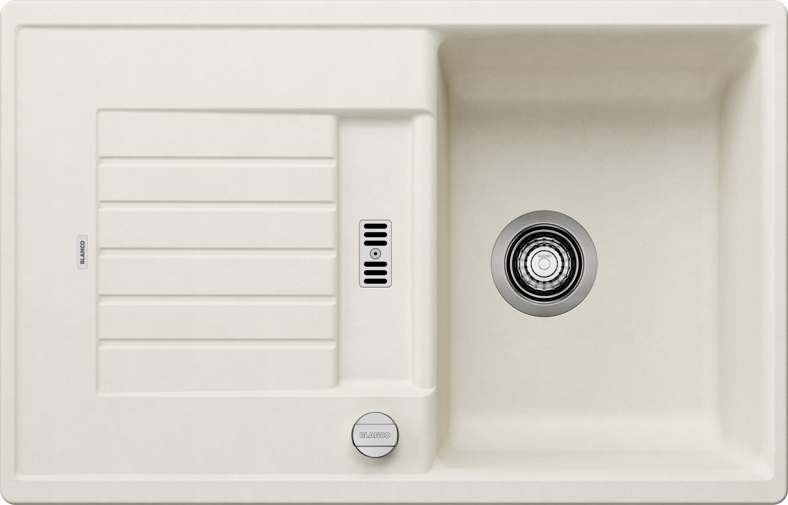 Blanco Zia 45 S 527199 Enkele Keukenspoelbak Silgranit Zacht Wit Inclusief Draaiknopbediening Omkeerbaar Opbouw