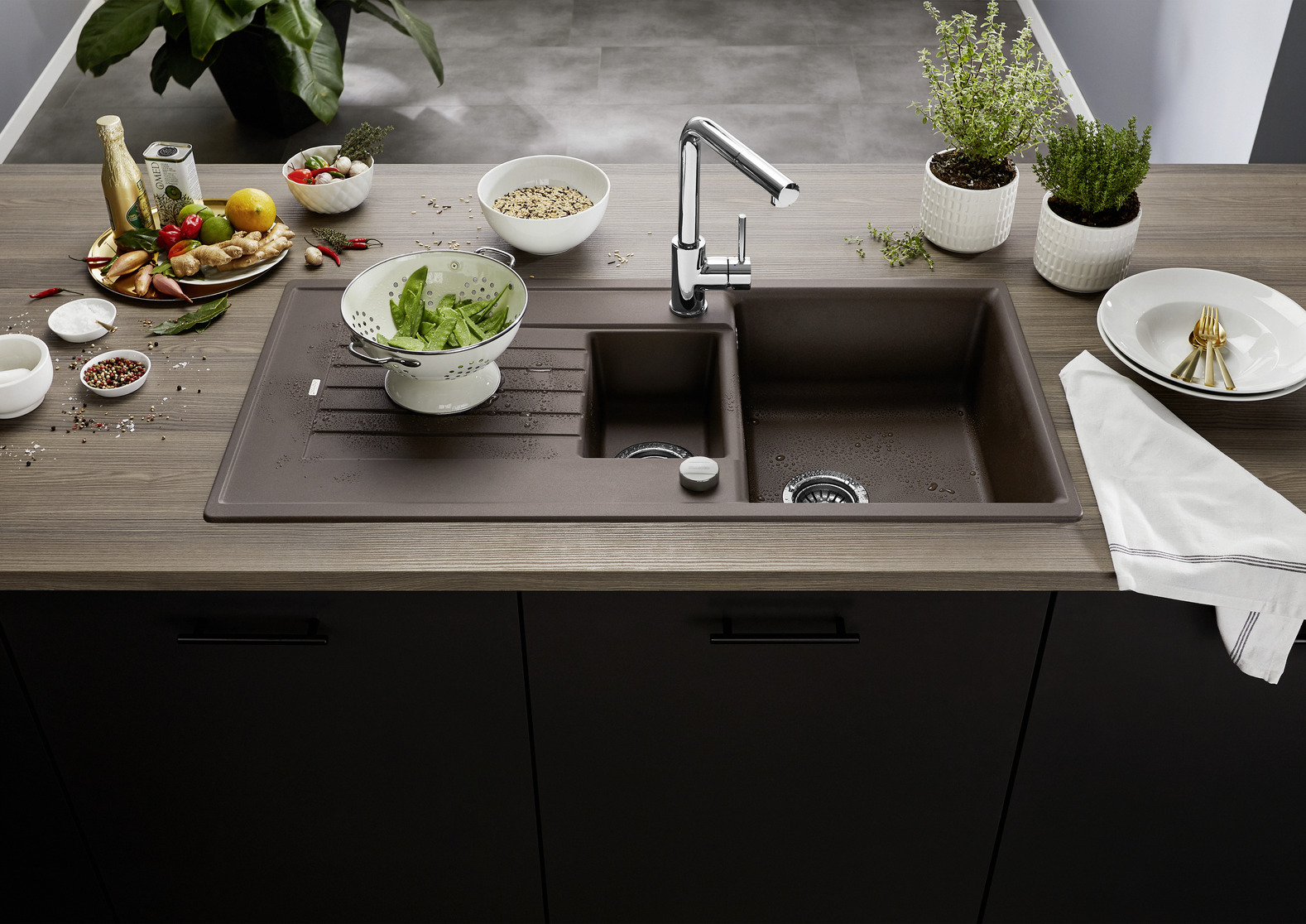• Antraciet spoelbakken