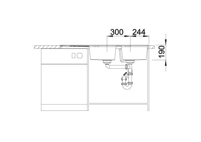 Inclusief plaatsbesparend afloopgarnituur, korfventiel 3 ½”