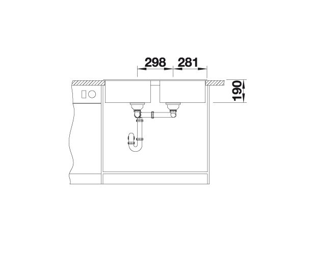 Inclusief plaatsbesparend afloopgarnituur, twee korfventielen 3 ½”