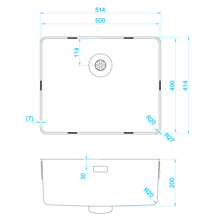 – Diepte van 200 mm voor voldoende ruimte bij afwassen