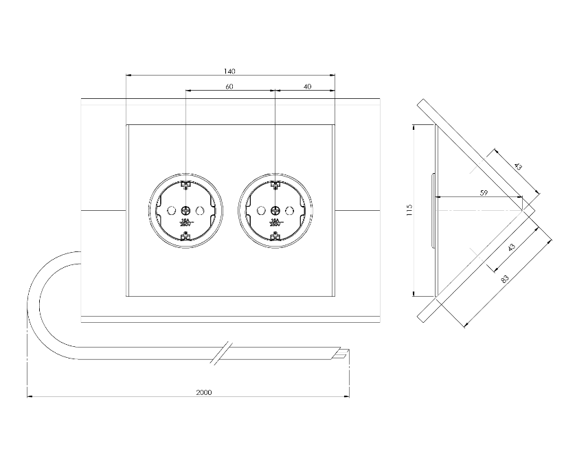 - Snoer lengte 2000 mm