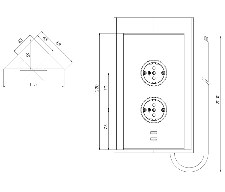 - Voorziet probleemloos diverse apparaten van spanning middels 2 WCD. Inclusief aansluitsnoer 2mtr en losse steker