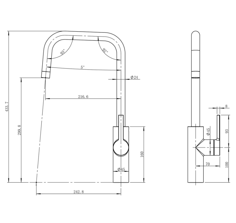 – Vaste, draaibare uitloop om elke hoek van je gootsteen te bereiken