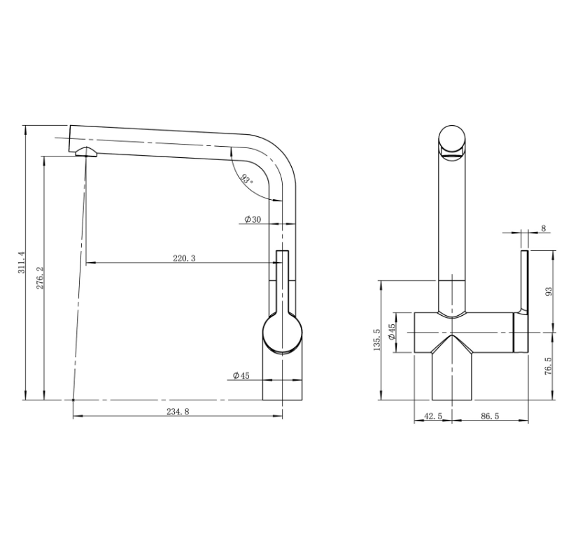 – Uitloophoogte van 311,4 mm en diepte van 220,3 mm voor optimaal gebruiksgemak