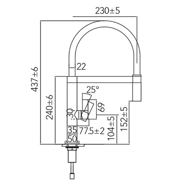 – Uitloophoogte van 437 mm en diepte van 230 mm voor optimaal gebruiksgemak