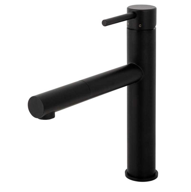De zwarte kraan kenmerkt zich door de elegante mat zwarte afwerking