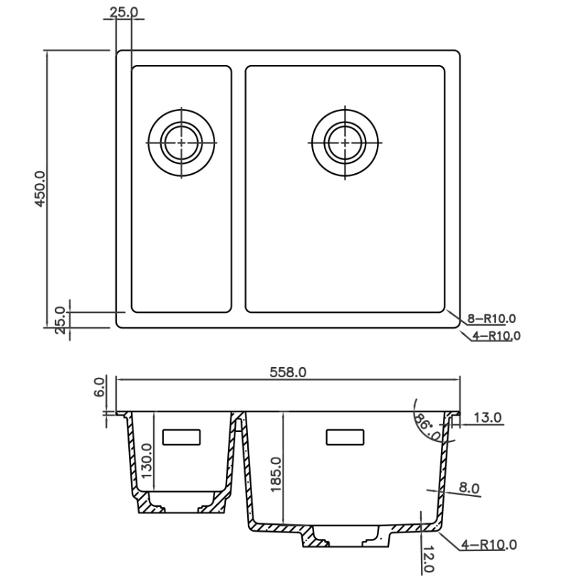 Categorieën: 600 mm, Granieten spoelbakken, zwarte spoelbak