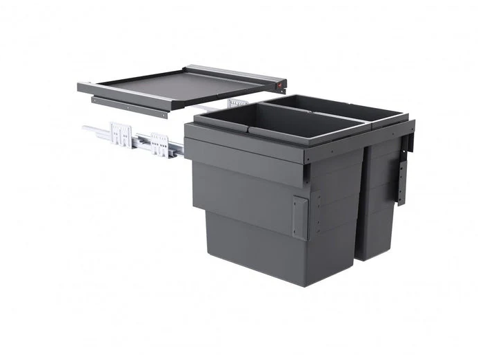 De Hailo Cargo Synchro – 46 liter is een geavanceerd uittrekbaar afvalsysteem dat perfect past in frontdeurkasten van 500 mm breed. Met twee aparte binnenemmers (28 en 18 liter) en hoogwaardige, gesynchroniseerde geleiders biedt dit systeem een perfecte balans tussen gebruiksgemak, capaciteit en modern design.
