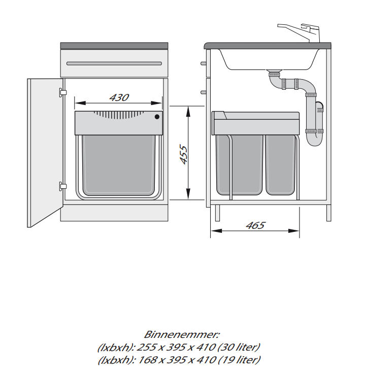 Dankzij de volledig uittrekbare geleiders heb je altijd directe toegang tot beide afvalbakken. De Easy-Cargo is een slimme keuze voor wie afval efficiënt wil scheiden én behoefte heeft aan extra kastruimte zonder rommel in het zicht.