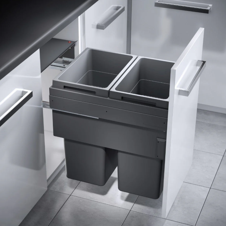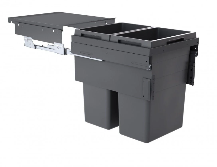 Dankzij de hoogwaardige synchronisatiegeleiders opent het systeem soepel en volledig, waardoor je eenvoudig toegang hebt tot beide afvalbakken. Het stevige metalen deksel zorgt voor een hygiënische afsluiting en voorkomt nare geurtjes in je keukenkast.