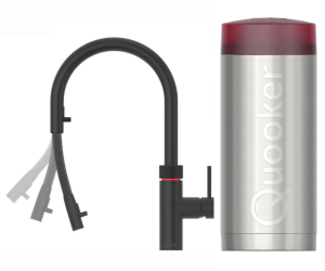Quooker Flex Round Zwart Met Combi Boiler 3 in 1 Kokend Water Keukenkraan Zwart 22XBLK AANBIEDING!!